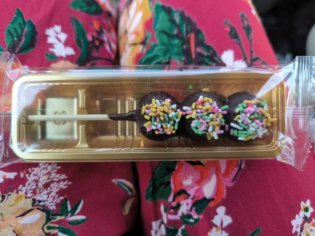 そこで売っている、冷たいチョコだんご。