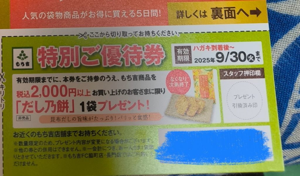 「もち吉」から届いてお手紙。