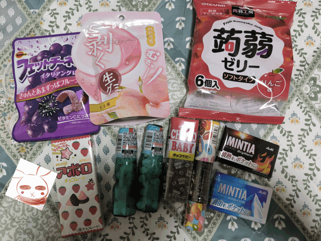 グミとかの、おやつを買ってきた。
