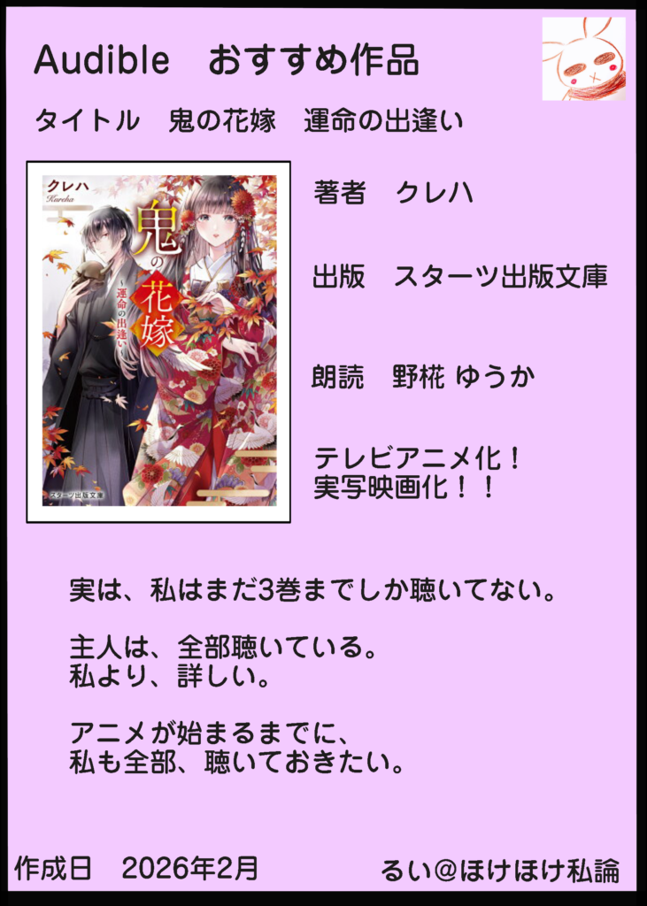 櫻子さんは、政略結婚しなくてはならない立場だから防衛本能で腐女子になったのだと思う。【鬼の花嫁】【クレハ】【Audible】